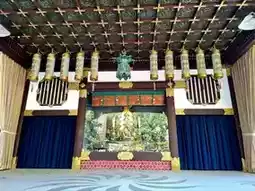 ⛩️It's famous for its giant lion-headed stage called "Shishiden" (or "Koma-Inu").