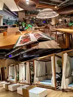 The interior is decorated like something straight out of Hogsmeade Village 🏡, with long wooden tables, antique lamps, and soft music playing, creating a warm, wizarding tavern-like atmosphere. 🎶✨