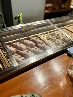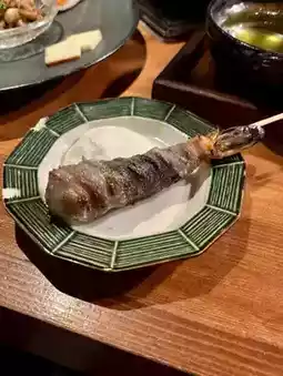 All skewers are perfectly grilled, bringing out the rich flavor of the ingredients. The sukiyaki roll is coated with a sweet and spicy sauce and egg yolk, while the shrimp and pork roll is perfectly tender and juicy.
