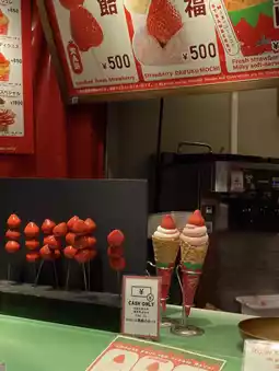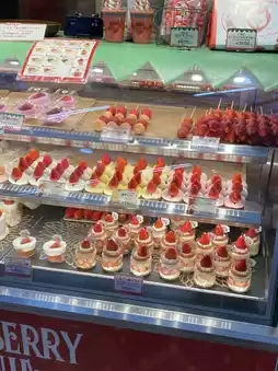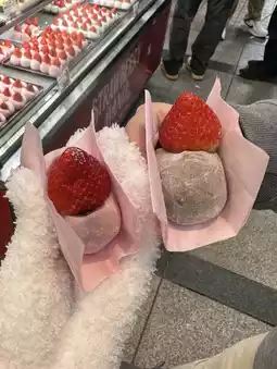 Their most popular item is the strawberry daifuku, but they also serve strawberry ice cream, smoothies, and candied strawberries – all incredibly photogenic 📸.