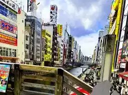 Near Ebisu Bridge, you'll find the famous Glico neon sign and the Kuidaore doll, perfect spots for photos.