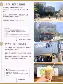 From crepe shops I wanted to visit after seeing them on social media, to classic takoyaki, and even Shitennoji Temple, which I had never been to despite coming to Osaka, this plan lets you fully enjoy gourmet sightseeing ☺️