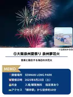 ⑤ Osaka Senshu Summer Festival Senshu Dream Fireworks