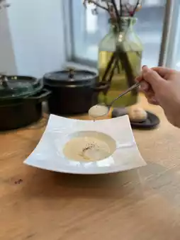 The seasonal new onion potage was impressively sweet and delicious. Both the appetizer and main dish were hearty and left me fully satisfied.