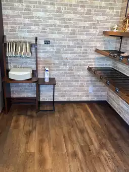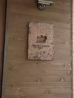 The large flag advertising their homemade bread is quite eye-catching. The wooden signboard and plates of the shop are also lovely.