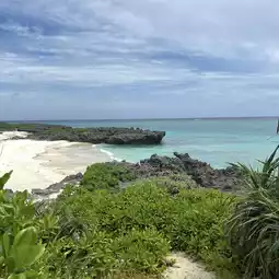 Yoron Station is a popular photo spot featuring wheels, rails, and a waiting area that were actually used on Kagoshima's mainland. Inside the station, you'll find a short 5-meter rail with wheels, a station name sign, and a gate. From Yoron Station, you can enjoy breathtaking views of the coastal cliffs and the stunning Yoron Blue sea.