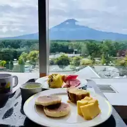 Breakfast at the hotel buffet, the food was decent, nothing special surprises, but the 2-story giant floor-to-ceiling glass windows with a clear view of Mount Fuji for breakfast was super enjoyable!