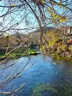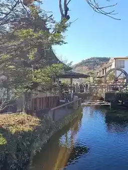 The village paths wind gently among rustic thatched-roof houses, and the subtle trickle of water from the ponds adds a meditative soundtrack to the stroll. Fallen leaves float gracefully along the water, while the reflections of nearby mountains add depth and contrast, making every scene a natural masterpiece. Small shrines and wooden markers along the walkways lend cultural context, enhancing the charm of the village’s autumn scenery.