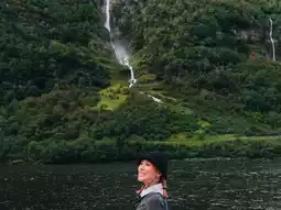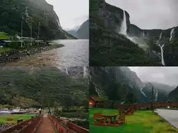 10:10-11:10 AM: Voss-Gudvangen Before transferring to a bus, we took a scenic road to Gudvangen village, surrounded by steep mountains. The bus fare was NOK 72 per person. Around 10:25 AM, we passed the stunning Tvindefossen waterfall. On the way to Gudvangen, we stopped for a 20-minute stroll and took photos...the view was breathtaking.