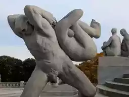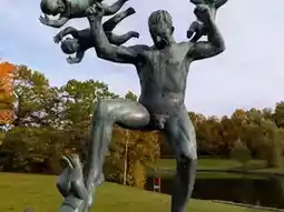 Sculpture park in the Frogner Park with more than 200 sculptures by Gustav Vigeland (1869–1943) in bronze, granite and cast iron, including The Angry Boy (Sinnataggen in Norwegian), The Monolith (Monolitten) and The Wheel of Life (Livshjulet).