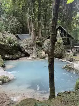 💦 13m high white veil-like waterfall 🌊 Emerald natural pool 🌿 Mossy rocks and tropical plants 📸 SNS life shot mecca