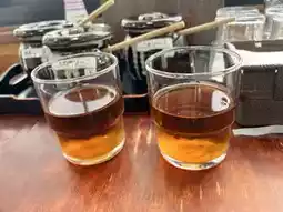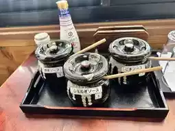 You can enjoy the tonkatsu with three types of sauces: onion sauce, vegetable sauce, and sesame sauce.