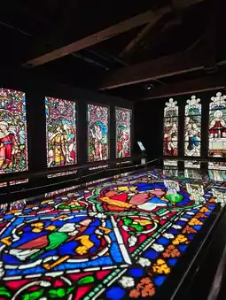 The works housed at the Stained Glass Museum in the Former Takahashi Warehouse in Otaru Art Village were produced in England from the late 19th century to the early 20th century, and are stained glass that actually decorated church windows.