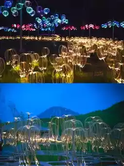 Evenings feature the super romantic Mountain Lights art installation🪻