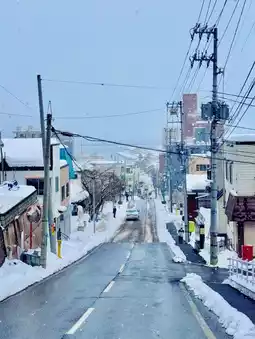 A street lined with small izakayas, perfect for enjoying a warm glass of sake on a snowy night. 🍶