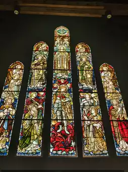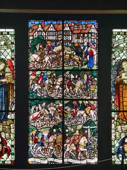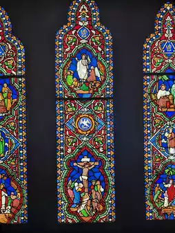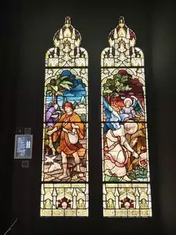 Some noteworthy stained-glass windows include "The Sower," "The Canterbury Tales," and "The Last Supper."