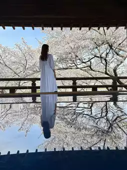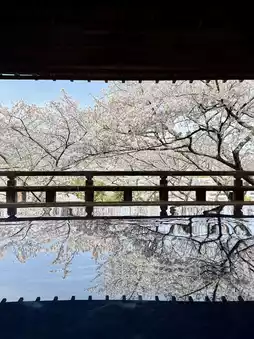 Miidera Temple in Shiga Prefecture is also a famous cherry blossom spot. In spring, 1,300 cherry trees are in full bloom in the temple grounds. The reflections on the moon-viewing stage, which is only open to the public during this time of year, are amazing. You can rent out the stage for just 5 minutes and have the cherry blossom reflections all to yourself. It's a luxurious experience that will make your heart flutter. The blue sky and cherry blossoms reflected on the mirror that spreads out before you when you step onto the stage are breathtakingly beautiful. You'll be moved. It's like you're floating in a sea of cherry blossoms. It's so wonderful. A must-visit spot. Save it and go. Save it. Go. Save it. Go. Save it. Go. ** **❤︎ ✰ ✼ • • ┈ ┈ ┈ ┈ • • ✼ • • ┈ ┈ ┈ ┈ • • ✼ 📍 Head Temple Miidera Temple Moon Viewing Stage