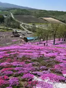 Higashimokoto Shibazakura Park, located in Ozora Town, Hokkaido, is a spectacular destination where the hills are covered in vibrant pink moss phlox from mid-May to early June every year 🌸.
