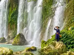In the many branches of the waterfall, you can see many tourists wearing traditional Vietnamese clothing and taking their own photos. This atmosphere is also another attraction for foreign tourists.
