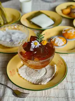 🌙 🥥"Jan Fong" is a local Lanna Thai & Northern dessert shop that recently opened in Chiang Mai, in the Pa Daet area. It is currently being talked about because it is almost like a Thai dessert museum for people who have never tried it before to come and try it because they have rare Thai desserts that are rotated every day.