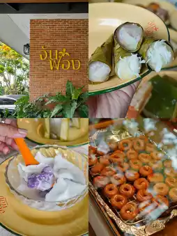 🥠"Jan Fong" is a Thai dessert shop with a local name that comes from Grandma Jan Fong, the mother of Wan, the shop owner. The shop is located in the same area as the famous restaurant, Thap Ping by Anjakinn, in a small house in the front. There is a cafe-style seating area or you can buy it to take home and get a cute tote bag.