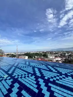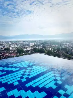 Perched atop the city’s skyline, the sky pool at ZHM Premiere Padang isn’t just a place to swim—it’s a place to float between worlds. On clear mornings, the water turns a soft blue, mirroring the sky so perfectly that you feel suspended in light. The edges blur, and Padang’s rooftops stretch out like a living mosaic beneath your feet.