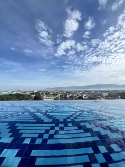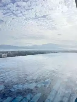 The infinity design invites you to lean into the horizon, where hills ripple in the distance and the city hums gently below. It’s a space of quiet grandeur—where even a casual dip becomes a moment of reflection. Families gather near the kids’ pool, laughter echoing against the glass walls, while solo travelers find peace in the stillness.