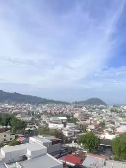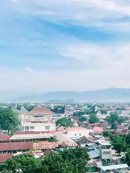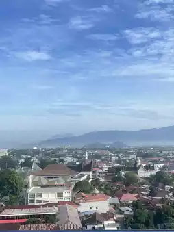 From the top floor of Hotel Premier Padang, the city unfolds like a living tapestry—rooftops glinting in the morning sun, minarets rising with quiet dignity, and the distant curve of the Indian Ocean shimmering like a promise. The view is both panoramic and intimate: a gentle chaos of motorbikes, market stalls, and schoolchildren weaving through the streets below, framed by the lush silhouettes of Bukit Barisan hills.
