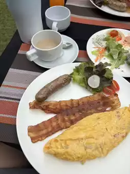 The staff provides excellent service, and the rooms are beautifully designed, truly worth the price. If you're traveling with family, we highly recommend booking a pool villa. It offers breathtaking views of both the pool and the mountains—so stunning it will leave you speechless. The atmosphere is fantastic, especially during the winter season. We encourage everyone to experience it at least once. The accommodations are thoughtfully designed, with every detail well-planned. The hotel is perfectly laid out, and the breakfast is delightful, featuring both main dishes and a variety of other options to choose from. The grilled pork is particularly delicious and very filling.