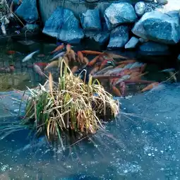 We met an amazing thing, which was the koi pond that had almost completely frozen, but the koi were still alive. 🥰
