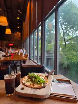 Nine Block, famous for its cafes in Paju, is also located in Book City. It was a really nice quiet place to enjoy on a rainy day. It was even better because we could enjoy drinks and brunch together. It was a moment that will remain in my memory for a long time, as I had pizza and coffee for breakfast on Chuseok. The rain falling softly outside the window was incredibly healing 💜