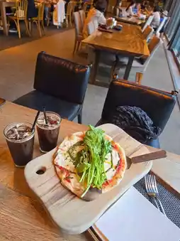 Planning a trip to Gyeonggi Province? Especially on a rainy day, make sure to visit here! The famous Paju café, Nine Block, also has a branch in the Publishing City. It was so peaceful and enjoyable, especially on a rainy day. I loved that you could enjoy both drinks and brunch there. It was a day I replaced my Chuseok morning with pizza and a cup of coffee, making it a moment that will stay in my memory for a long time. The rain softly falling by the window added an unparalleled sense of healing. 💜
