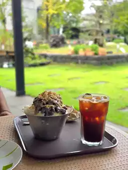 The healthy bread here was surprisingly delicious. It was easy on the stomach, so it was easy to eat, and it paired perfectly with red bean shaved ice and coffee.