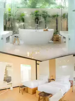 The tents here are unique, spacious, comfortable, and beautifully decorated with a wild luxury style. At night, you can lie on a soft sleeping bag and look at the stars through the small window on the tent roof✨. It feels like you're sleeping under the vast universe, which is amazing.