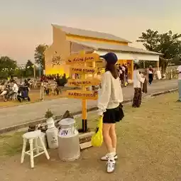When the sun is down and the wind is down like this, we would like to come and take a leisurely walk at Midwinter Khao Yai. The mood is great, we can take lots of pictures. This area is very spacious. There are many activities to do, both for children and adults. Anyone who has a pet can bring them to run around. Or if you want to find something to eat, there are many shops here. The popular shop After You is still open until 31/01/2025.