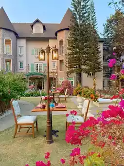 #Get a discount without relying on luck U Khaoyai, a place surrounded by nature, the atmosphere feels like being abroad, designed as a castle like Europe, has a beautiful swimming pool, a beautiful flower garden, a photo corner, a warmly decorated room, fully equipped with facilities. In the evening, there is a restaurant zone, perfect for dinner, beautifully arranged pavilions, serving a variety of food. And there is a Thai-American breakfast line #khaoyai