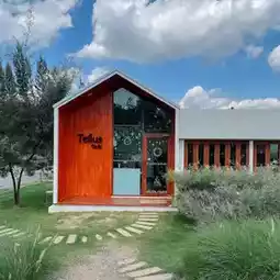 Cafe lovers must visit Tellus Cafe ☕️ A popular cafe located in SOL Glamping Khaoyai. Anyone who comes to Khao Yai must stop by. If you come in the evening, the view through the glass looks like a painting. The interior of the shop is decorated cutely. Most importantly, the desserts are delicious. I like it very much.