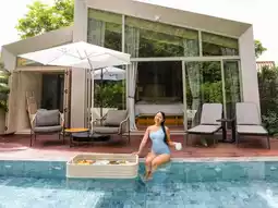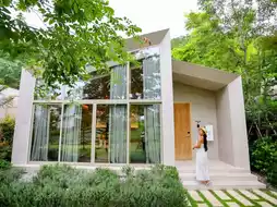 For the room this time, we stayed in a Pool Villa, a 1-bedroom, 1-bathroom, 1-living room villa. The interior is very spacious and proportional. At the back, open the balcony door and you will find a swimming pool surrounded by nature. It's so cool.
