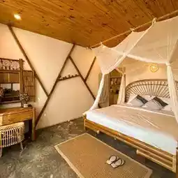 From the warm farmstay-style wooden huts to the wooden bridge