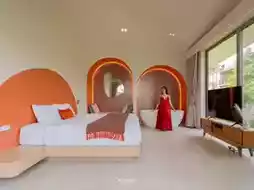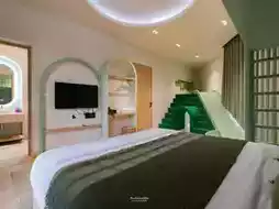 🌳 The newest Khao Yai pool villa in the Kin group, comes with a fun design, unique geometric shapes, suitable for relaxation, parties, gatherings, and also getting beautiful, chic photos. Let me tell you that this house definitely meets everyone's needs. The common area is fully equipped with activities to do during your stay. Whether you come with family, friends, or your favorite pet, you will be impressed and want to stay another night.