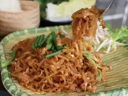 🍝 Korat Pad Mee, 100 baht. If you come to Korat, you can't miss it. The noodles are chewy and soft. Stir-fried to be fragrant and delicious like the original Korat style.