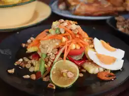 🥗 Som Tam Pu, 70 baht. Crispy papaya noodles are delicious. The taste is spicy and delicious.
