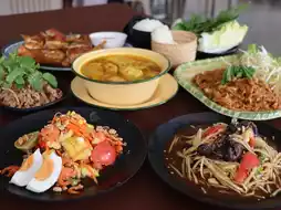 👍If you come to Khao Yai and want to eat grilled chicken or Isan food, this is the place for you. The shop is located on Thanarat Road, the way up to Khao Yai. The shop is prominent and has a large parking lot. The shop has many seating areas. There is an air-conditioned room. There are many menus. The taste is delicious. The price is not expensive.