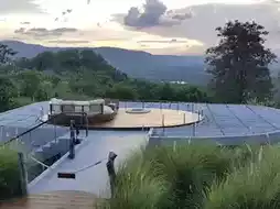 But the area I want you to see is the new swimming pool area of Sala Khao Yai. It's an infinity pool, meaning there's nothing to block this area. You have to come here because it's really beautiful. The real thing is much more beautiful than in the picture. You can see the sunset clearly like Vanilla Sky.