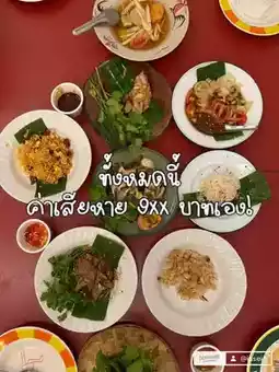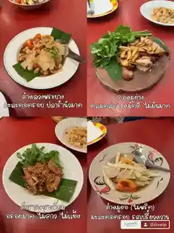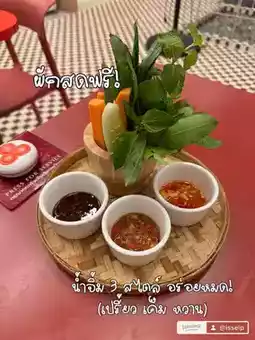 🪑 Let's start with the overall atmosphere. The restaurant is sooo beautiful, everyone. It's beautiful from the outside to the inside. Even when we went at night, it was beautiful. If we came during the day, it would definitely be even more beautiful. The outside is minimalist, simple, and clean (when we first walked in, we were talking about eating omakase 🤣). When we entered the restaurant, it was even more beautiful!!! The red tables are really beautiful. The contrast with the tiles is so bright. It follows all the rules of eating Isaan food, lol. There are a lot of tables, not too close together, and there are zones. It doesn't feel stuffy at all. It's airy and easy on the eyes. 💧Next up is the cleanliness of the tables, plates, and glasses. They're super clean and well-arranged. Most importantly, there's no bad smell in the shop at all!!! 🙇🏻♀️ Next up is the staff. They're super cute. They provide great service and give good recommendations. They can answer any questions you ask and they're very friendly. 🍲 Let's end with the food in the picture. The menu names may not be exact, but that's about it. Honestly, I'm impressed with everything. I ate 6 dishes and liked everything. Nothing special. ✨ The Luang Prabang papaya salad and the pork sausage salad are amazing. The papaya is very crispy and the flavors are well-rounded. If you love fermented fish, you won't be disappointed. ✨ The grilled pork neck is very well-rounded. It's marinated very well and isn't too fatty. It tends to be a bit dry, but it's okay. ✨ The liver with garlic is 10/10/10. If you love liver, this is a must-order. The liver is the right size, marinated well, not fishy at all, not tough, and cooked just right. The garlic is a bit sweet, but it's still very delicious. ✨ The grilled pork neck waterfall is okay, but there are a few herbs. It's hard to find pork 55555 But pork is still delicious✨ Stir-fried instant noodles, I can't remember the name, stir-fried instant noodles behind the school or something, it's sooo delicious!!! Eating it makes me think of my mom's cooking 555 Very well-rounded, not soggy, not mushy, the noodles are just right, but they add canned clams, it's weird but delicious.
