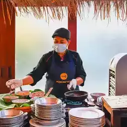 Designed to fit in with the local contemporary style, decorated with sarongs and woven bamboo.