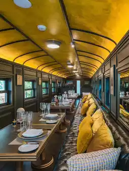 In addition, there are many cafes and restaurants here for friends to chill out, starting with Tea Carriage, a cafe in a very glamorous train carriage, where you can sit and sip Afternoon Tea and eat delicious snacks all day long, or Poirot Restaurant, where you can eat in the luxurious first class, with a natural view of the lake in front. Especially during sunset, when the lights from the lanterns shine in, it's very romantic. You have to try it.