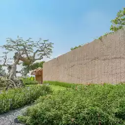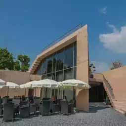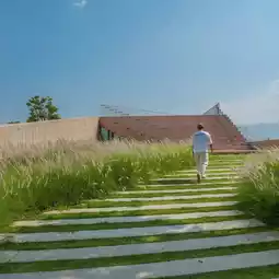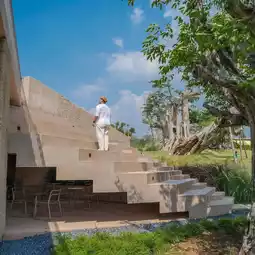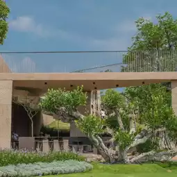 In terms of architectural elements Materials with textures and colors that blend with nature, such as earth and light pink, are used, as well as designs that allow nature to fully participate. Many openings in the building are designed to allow natural light to pass through, creating a harmonious connection between the architecture and the surrounding ecosystem.