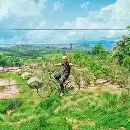 #Accommodation in the hundreds, Khao Yai accommodation, Bali style, 900 per person, lots of activities, 3 full meals, Flower Mountain Flowermountain Khaoyai, accommodation surrounded by nature, suitable for chilling out, playing activities such as sky cycling, Bali swing, bird's nest, mountain view, and there is a cafe with drinks, desserts, lots of photo spots, and full 3 meals, there is a swimming pool, rose garden, air-conditioned rooms, complete facilities. #Khao Yai #travel #Good atmosphere accommodation