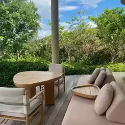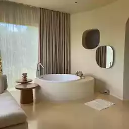 Sala Khaoyai stands out with its minimalist design, white brick walls, polished concrete floors and floor-to-ceiling glass windows that fully open up to the mountain view. Each room has a private pool and outdoor bathtub, allowing you to experience nature up close.